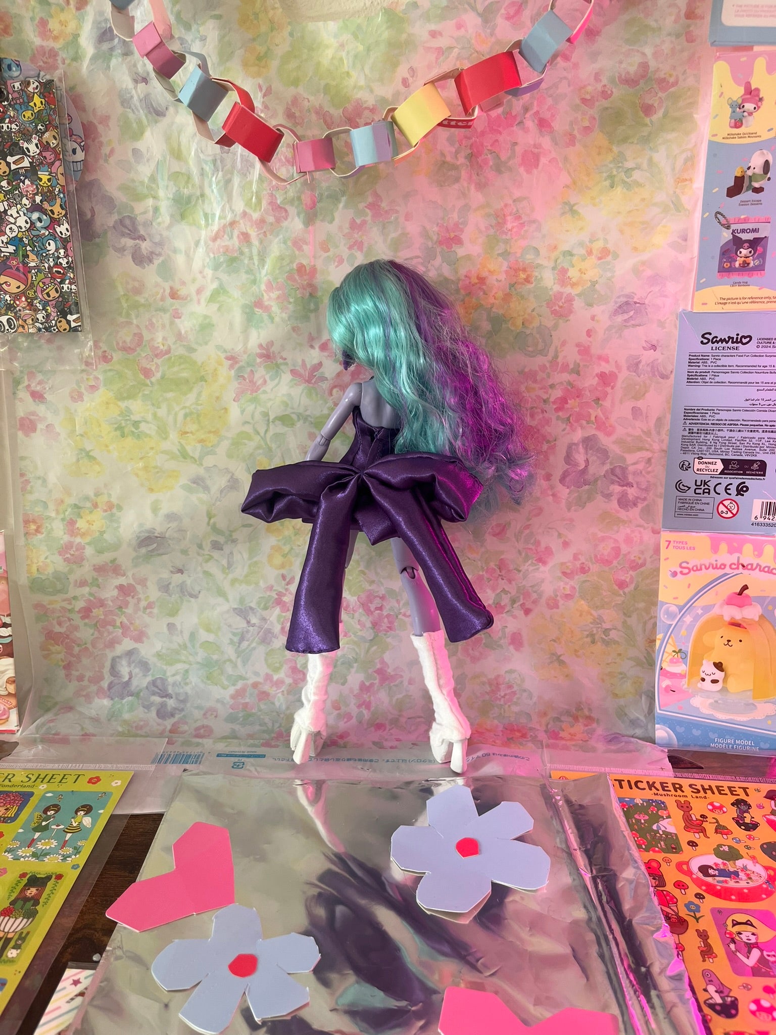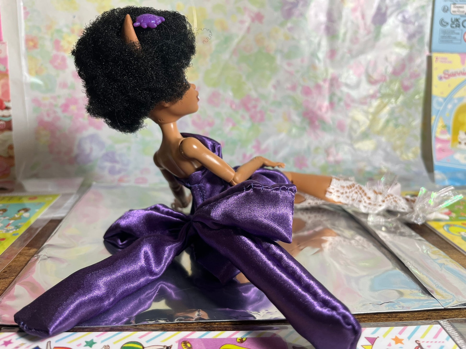 This dress features four bodice-hugging darts along the torso, and a giant signature bow on the back all in a luxurious dark purple shiny fabric. A perfect addition to your G3 Monster High restyle!